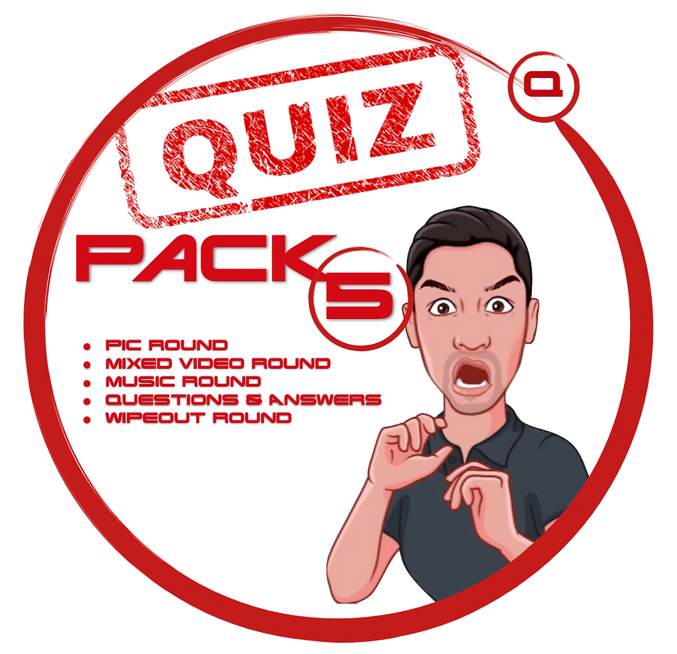 All our packs include: A picture round, general knowledge questions, a music round and mixed edited video elements to present to your quizzers!